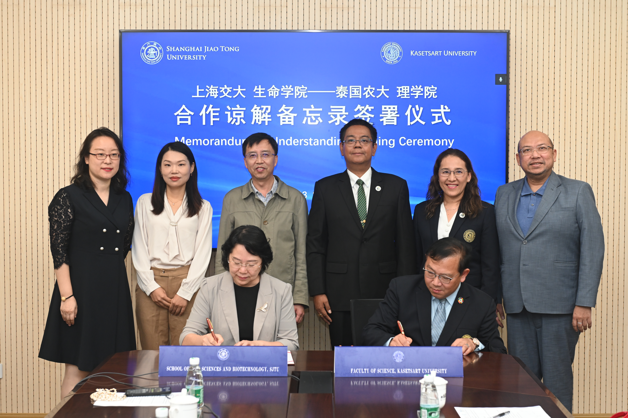 On November 3, 2023, School of Life Sciences and Biotechnology, Shanghai Jiao Tong University (SLSB, SJTU) and Faculty of Science, Kasetsart University (FS, KU) signed a Memorandum of Understanding (MoU) in academic research, education and student exchange. SLSB Dean Yan Feng hosted KU Vice President Seri Koonjaenak and the delegation.