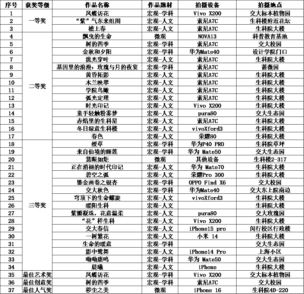 加拿大pc28 “生科•光影之美”摄影大赛经过前期的作品征集,网上投票,专家会评等环节,已经圆满结束。本次比赛共收到三十余位老师提交的54幅作品,其中宏观50幅,微观4幅。由于微观作品数量太少,不再单独评奖,所有作品统一评奖。共评出一等奖作品3幅,二等奖作品14幅,三等奖作品17幅。获奖人员按获得的最高等级发放奖励,不重复发放。