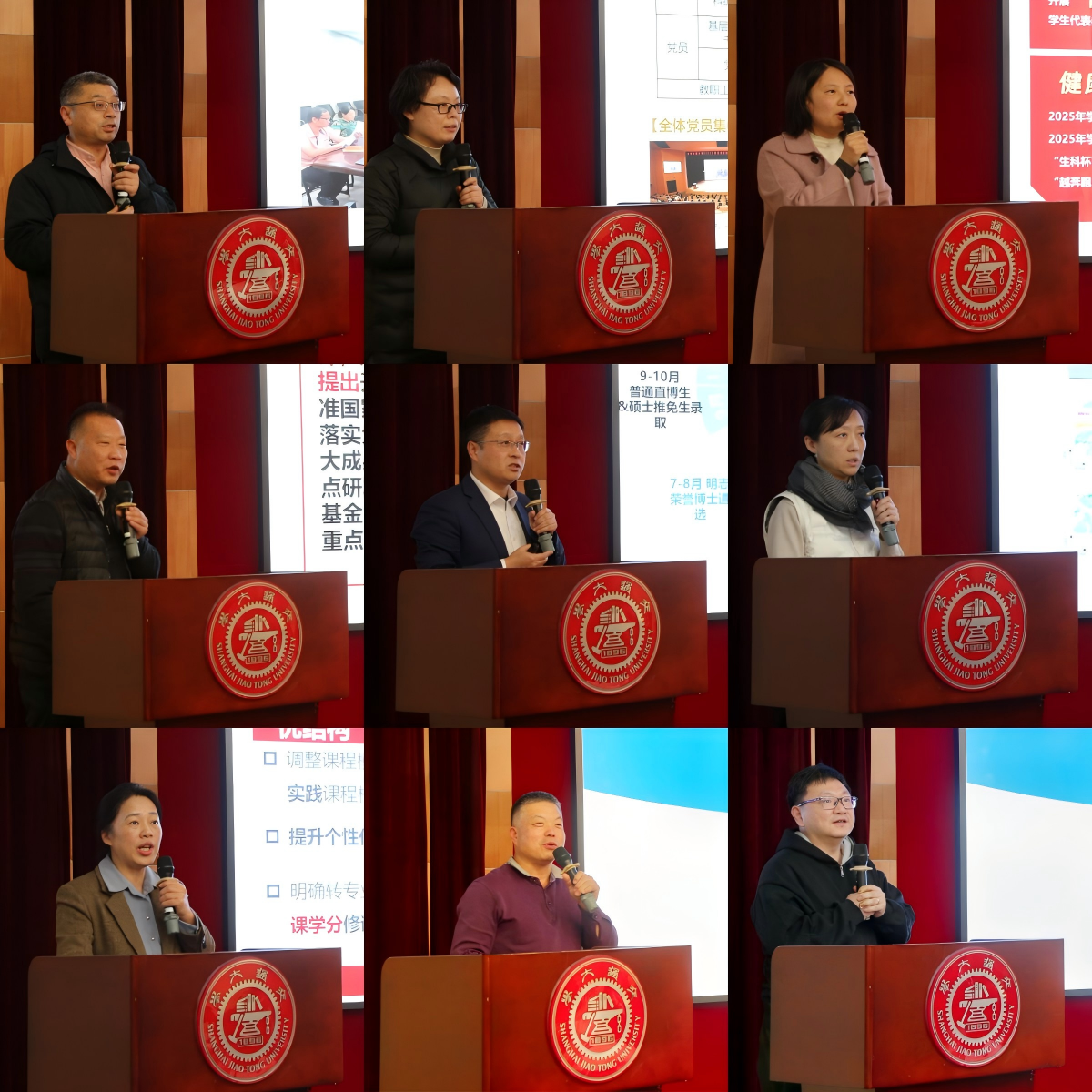 院长张雁做学院工作总结并进行个人述职。他系统介绍了2025年度学院整体工作情况,着重汇报了学院在学科基地建设、师资队伍建设、人才培养、科学研究等方面的亮点工作和重要突破。他表示,未来学院将面向医药健康、粮食安全、生物制造等领域重大需求,主动对接生物医药先导产业,抢抓发展机遇,全面深化改革,前瞻布局学科重塑与能级提升,建设中国特色、世界一流的生命科学创新高地。