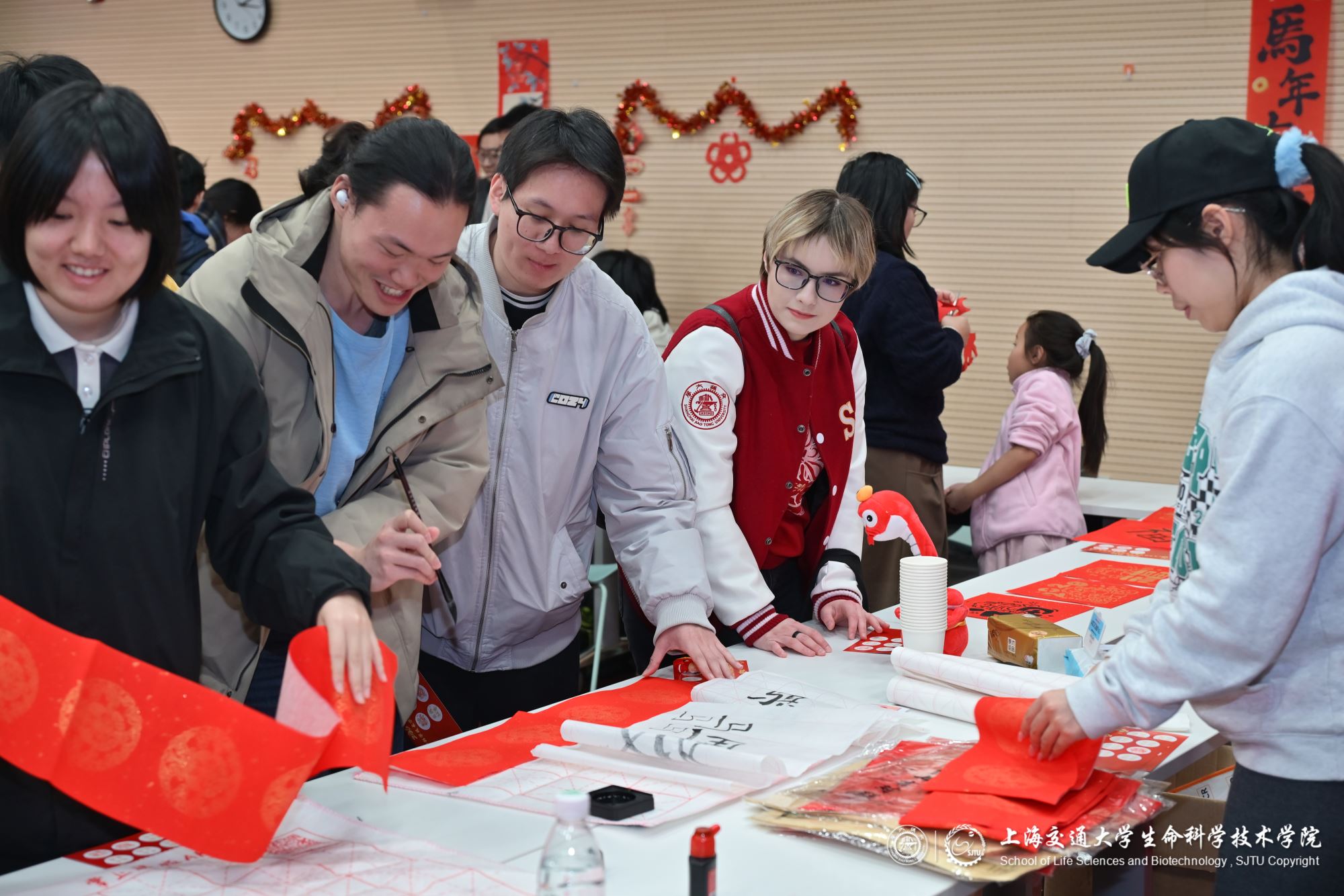 活动吸引了数百名学院师生参与,现场热闹非凡,乐趣满满。投壶项目中,同学们聚精会神、抬手投掷,以传统雅趣预祝新岁学术成果百投百中;笔墨飘香间,一张张福字承载着同窗情谊,传递新年美好祝愿;套圈区域热闹非凡,大家瞄准目标、抬手投掷,寄托着对家庭团圆、生活美满的期盼;剪纸摊位前,红纸化作吉祥纹样,蕴藏着健康快乐、万事如意的美好心愿;灯谜区里,同学们驻足思索、相互探讨,在解谜闯关中启迪智慧,勾勒美好生活图景;拓印互动里,同学们用心印制吉祥纹样,定格美好寓意,祈愿新年事事顺遂,岁岁安康。