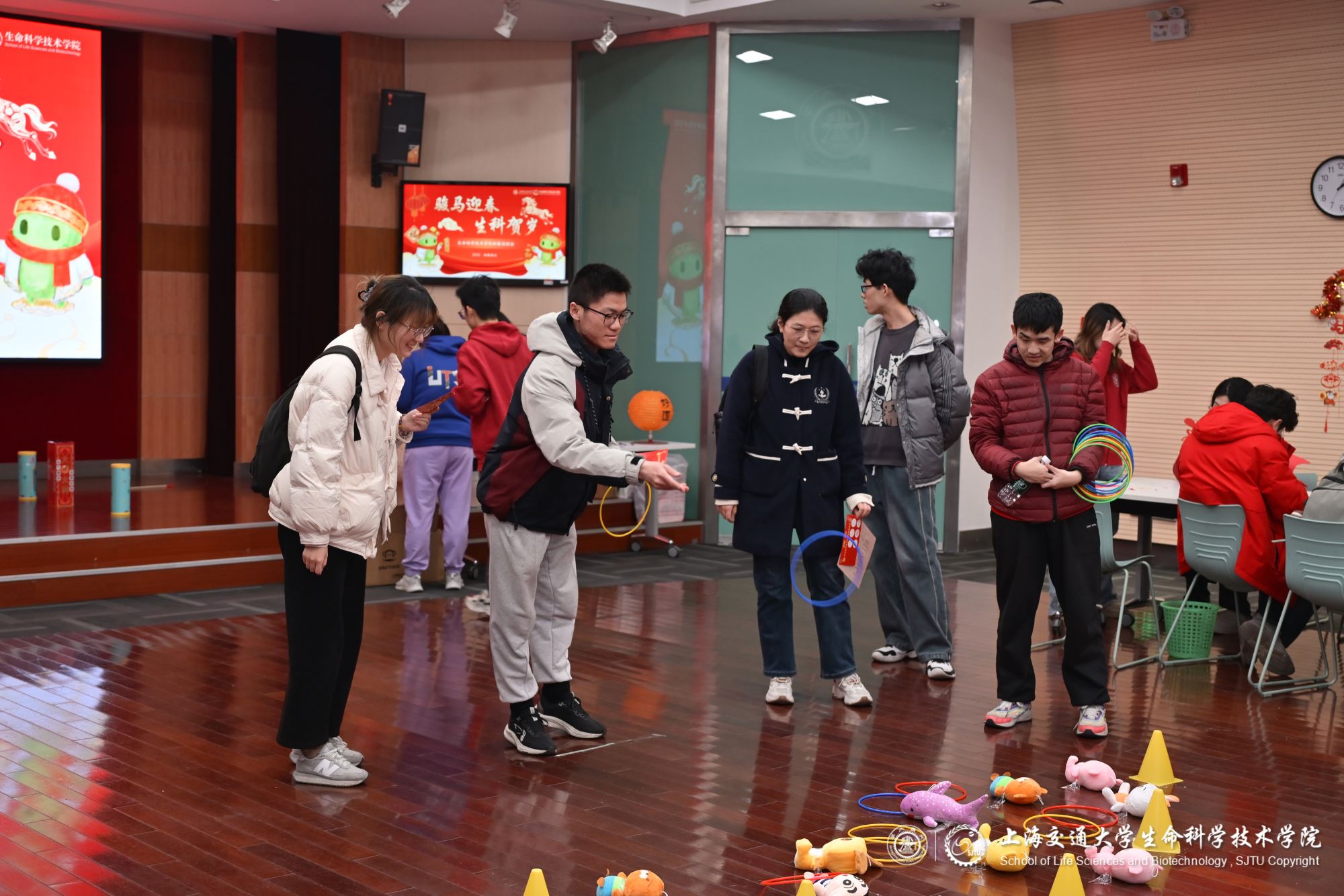 马蹄声声辞旧岁,策马扬鞭迎新春。2026年春节前夕,加拿大pc28 在生命药学楼树华多功能厅和大厅隆重举办新春游园会,学院党委副书记张燕红、学生办主任宋奕青、思政教师、辅导员与学生们欢聚一堂,在欢声笑语中参与游园活动,共迎新春。