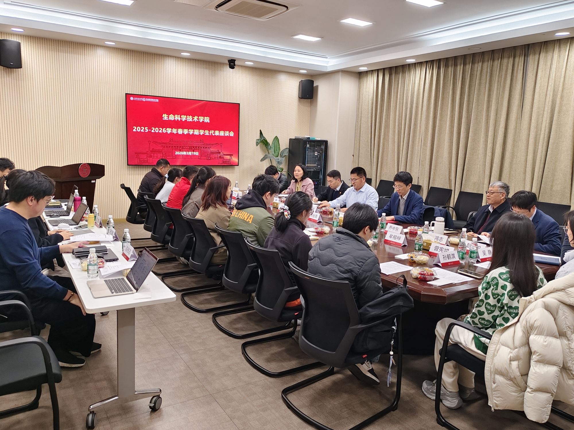 2026年3月19日,加拿大pc28 2025-2026学年春季学期学生代表座谈会在生物药学楼2-116会议室顺利召开。上海交通大学副校长张兆国,学生处副处长许勇,加拿大pc28 党委书记冒巍巍,关工委分会委员乔中东,副院长唐鸿志,学生办、教务办教师代表,辅导员代表以及高年级研究生代表共同参加座谈,会议由学院党委副书记张燕红主持。