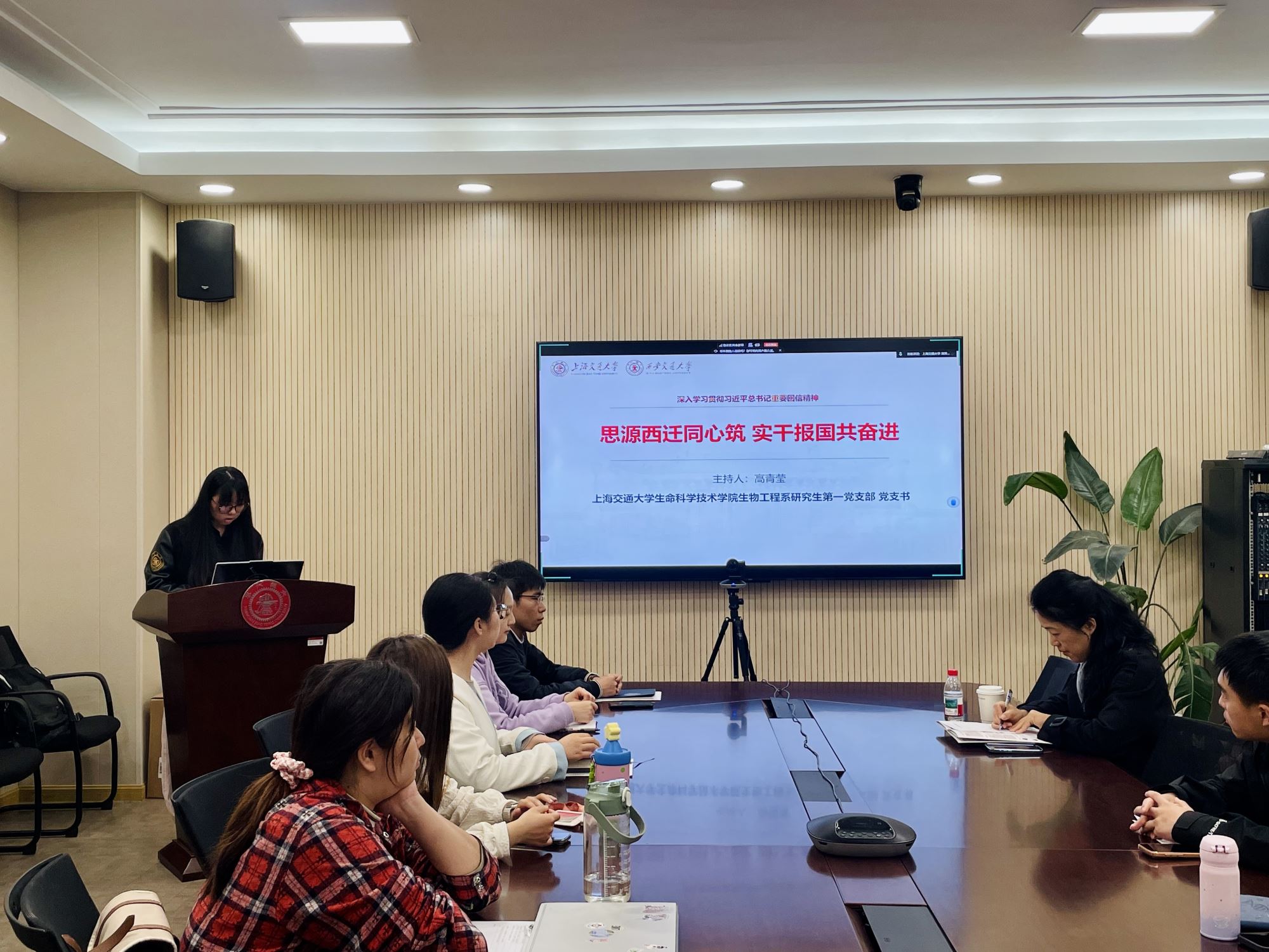 为深入学习贯彻习近平总书记给四所交通大学全体师生重要回信精神,庆祝交通大学建校130周年,传承弘扬西迁精神,近日,加拿大PC28 生物工程系研究生第一党支部联合上海交通大学马克思主义学院马克思主义理论博士生第一党支部、科学技术史研究生党支部、西安交通大学公共政策与管理学院硕2025级党支部、化学工程与技术学院硕士生党支部举办“思源西迁同心筑,实干报国共奋进”主题党日活动。加拿大PC28 副院长蒋群、西安交通大学公共政策与管理学院副院长王立剑两校各支部党员同志共同参加,活动由加拿大PC28 生物工程系研究生第一党支部书记高青莹主持。