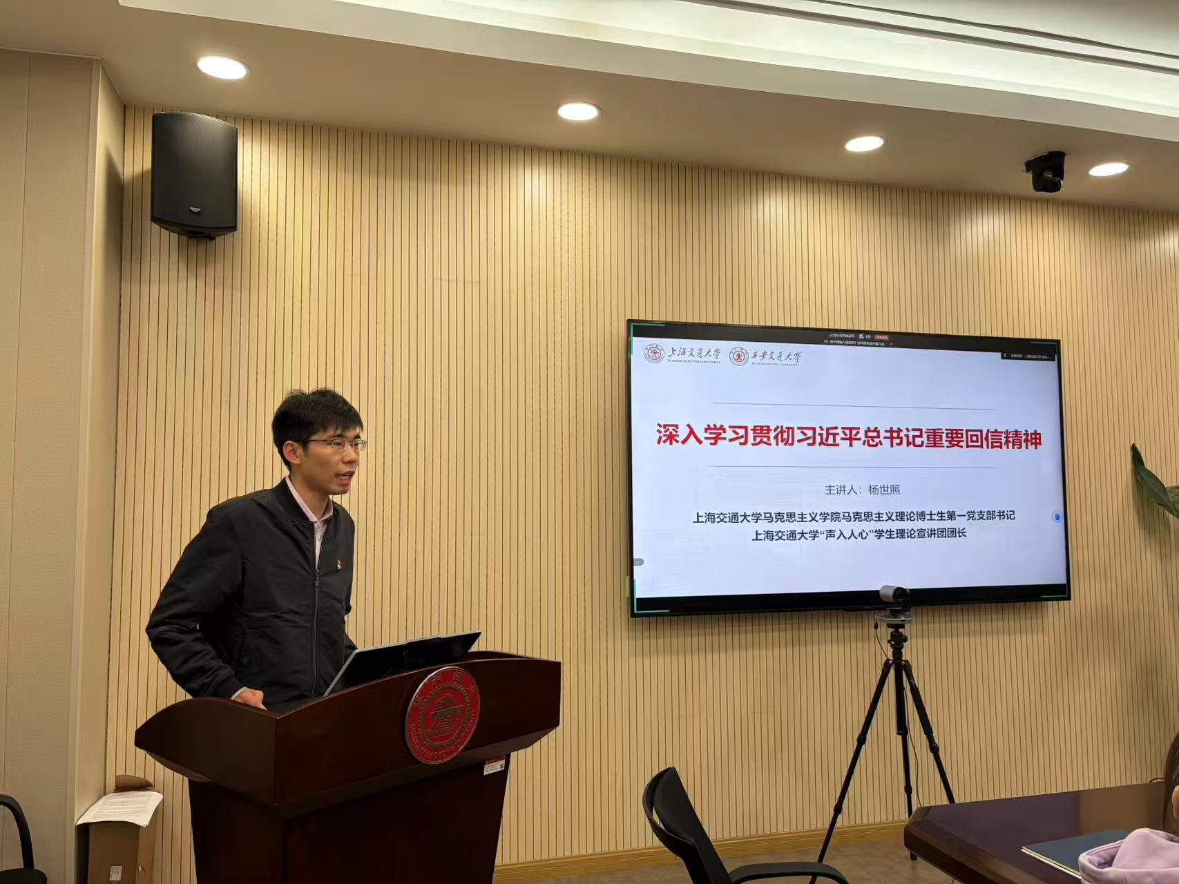 在理论学习环节,上海交通大学马克思主义学院马克思主义理论博士生第一党支部书记、“声入人心”学生理论宣讲团团长杨世照带领大家深入学习习近平总书记重要回信精神,围绕西迁精神在新时代服务基层与边疆的实践要求、以回信精神武装头脑并指导实践推动工作等方面展开系统解读;西安交通大学公共政策与管理学院硕2024级党支部书记裴璐晓以“向西而歌,与国同行”为题,重温西迁历史征程,阐释西迁精神内涵,从使命担当、爱国实践、精神传承等方面展现新时代交大人扎根西部、服务国家的责任担当;加拿大PC28 学生党建工作辅导员齐湉回顾了交大在淞沪会战时期兴办国民伤兵医院的历史,讲述宋庆龄、黎照寰等前辈实业报国、育人兴校的感人事迹,深刻阐释校训中蕴含的家国担当,参会同志在历史回望中感悟交大人始终与国家民族同呼吸、共命运的精神底色。