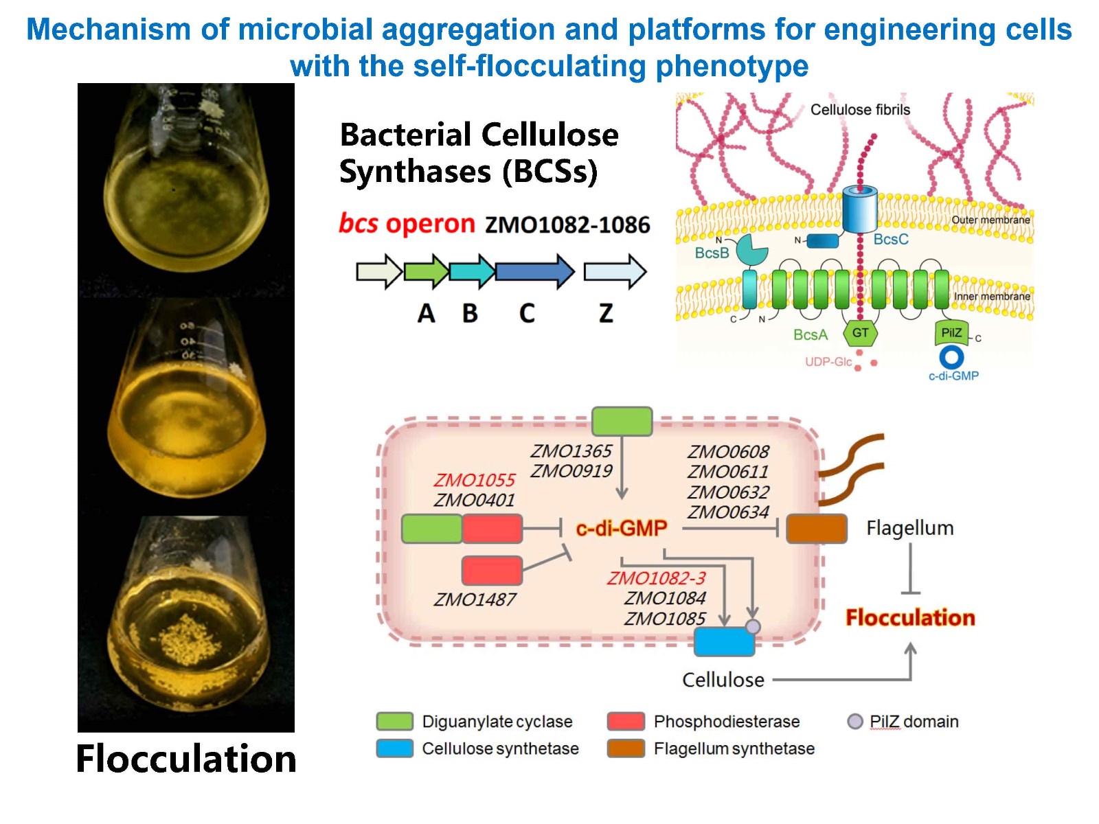 Mechanism of microbial aggregation and platforms for engineering cells with the self-flocculating phenotype